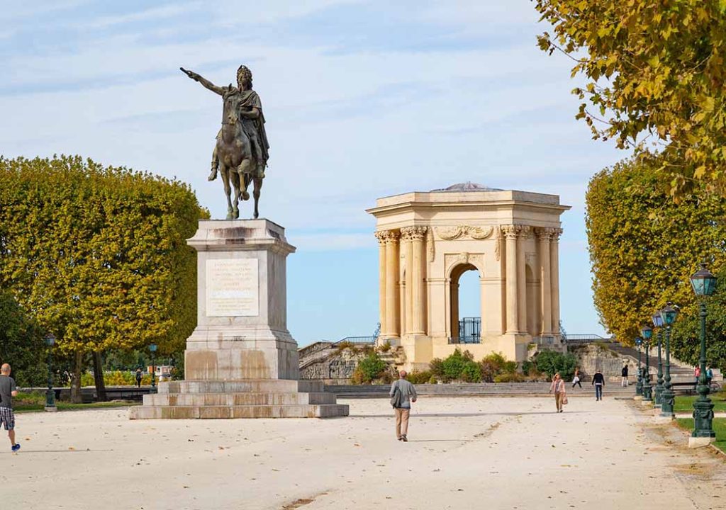 The Peyrou Promenade is one of the most beautiful scenic spots in Montpellier, located at the western edge of the city and extending into the city park. Tall trees line the promenade, creating a lush green environment, and at the end of the path stands a magnificent arch and fountain, surrounded by tranquil and serene views. This is a popular spot for locals to jog, walk, and relax, and an ideal place for visitors to enjoy the city’s beauty and unwind. The area is also home to a large equestrian statue of Louis XIV, adding a historical touch to the picturesque scene.